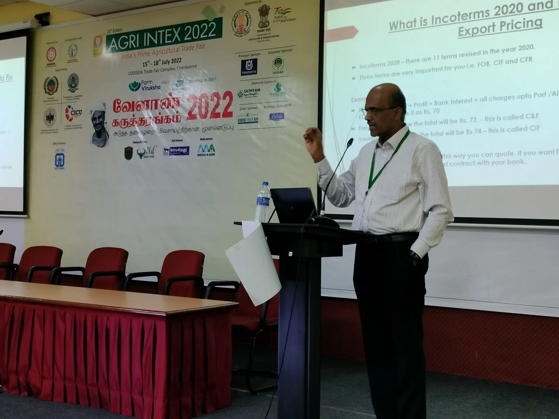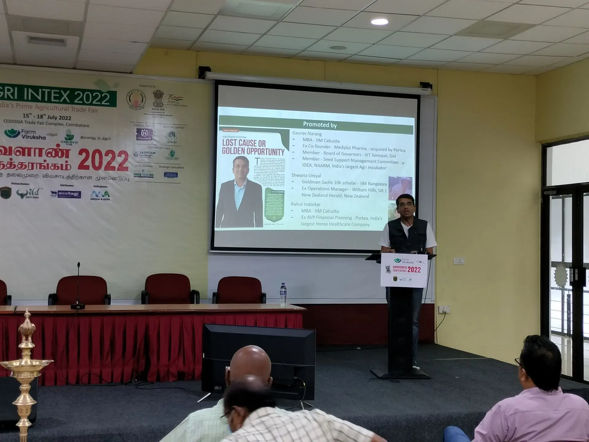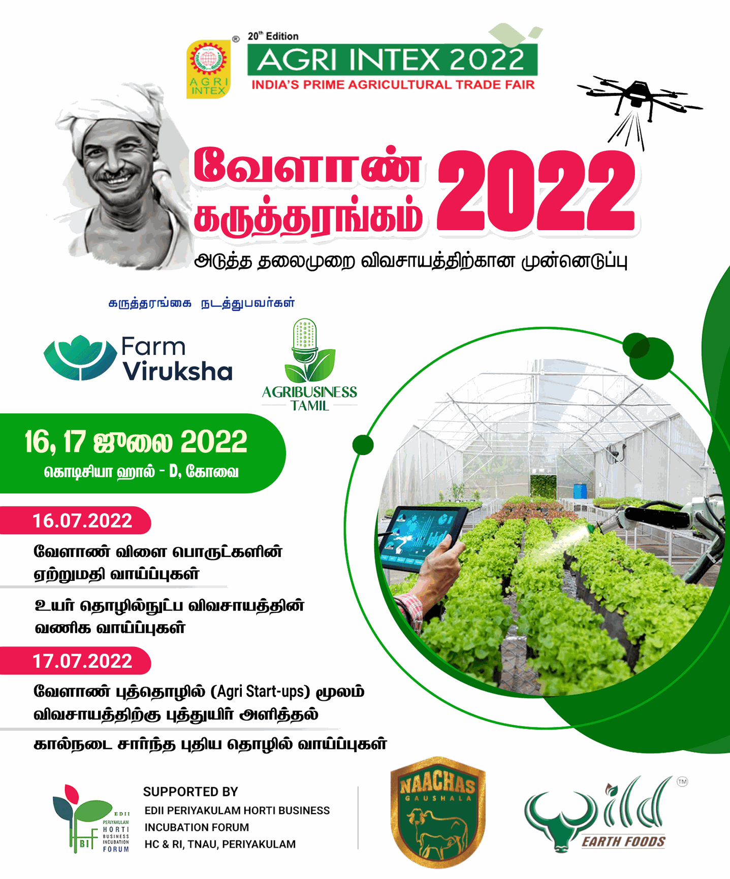 Agribusiness Conference 2022 is a two-day event organised by Farm Viruksha & Agribusiness Tamil on July 16 & 17, 2022 on 20th Edition of Agri Intex 2022 at Codissia, Coimbatore. Two days includes four sessions that consists of diversified topics on agriculture related to Exports, Hi-tech Farming, Agri Startups and Innovative Livestock Ventures. More that 200 participants attended the sessions which was handled by 15+ eminent speakers.