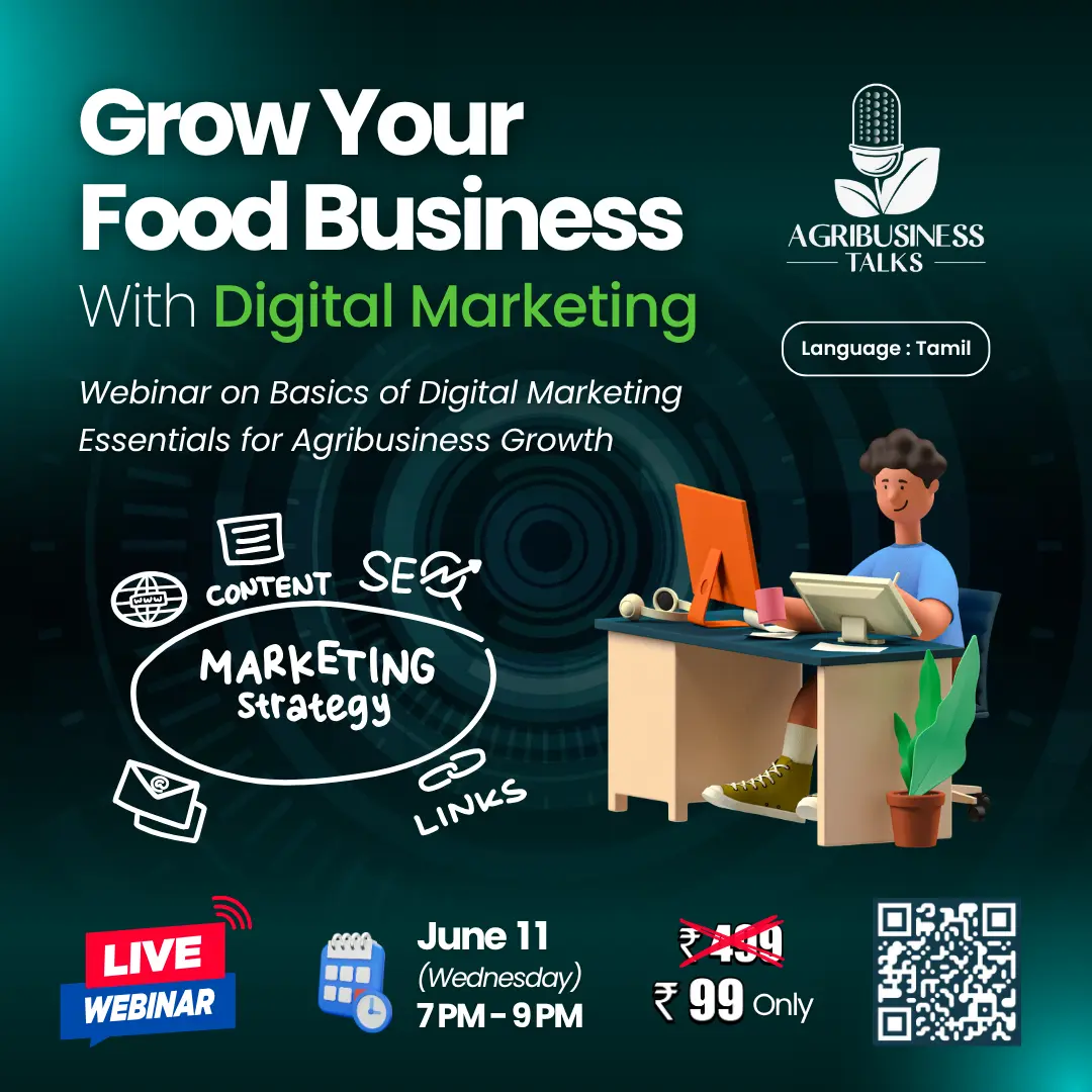 Join our 2-hour beginner-friendly webinar in Tamil and learn how to use digital marketing to promote your agri or food business, attract customers, and drive sales.